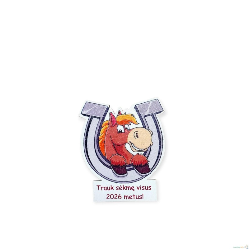 Spalvotas šventinis magnetukas su 2026 – ųjų Arklio metų simboliu.